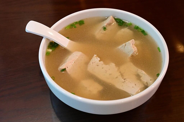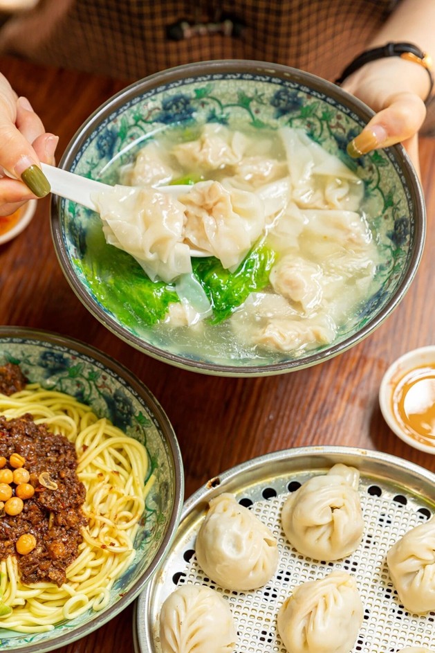 スープを添えたいなら、ぜひ豆腐湯を試してほしい。前日の豆乳を発酵させた「老漿水」で寄せ固めた豆腐は、きめ細かくなめらか。“烫嘴豆腐(タンジュイトウフ)”は干し金針菜とアサリの干物とともに煮込まれ、澄んだ味わいと深い旨みが広がる——それは多くの人にとって、故郷を思い出させる味なのだ。