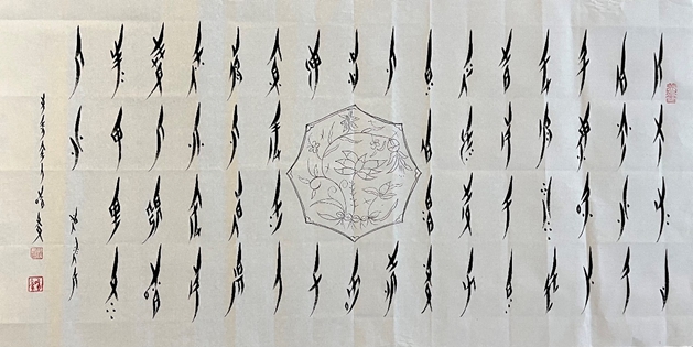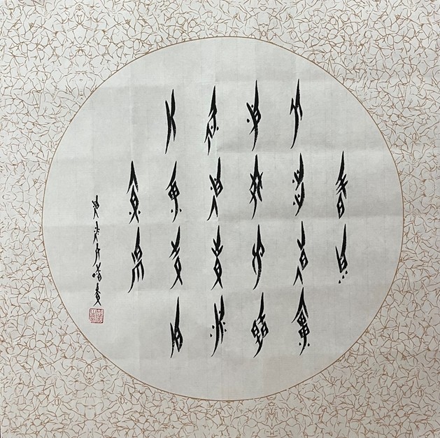 江永は古くから多民族が共に暮らす土地であり、方言が入り交じる。まさにその多様な文化の土壌の中で、女書はひっそりと芽吹いた。それは漢字のように方正でもなく、世界のどの文字体系にも属さない。筆画は細く長く、斜めに流れ、まるで菱の葉のようにしなやかで美しい。——柔らかさの中に芯の強さを秘め、静けさの中に力が宿る。音節単位で構成され、点・縦・斜・弧のわずか四つの筆画で独自の文法を築くその姿は、まさに女性たちの感性が生んだ文字の詩である。