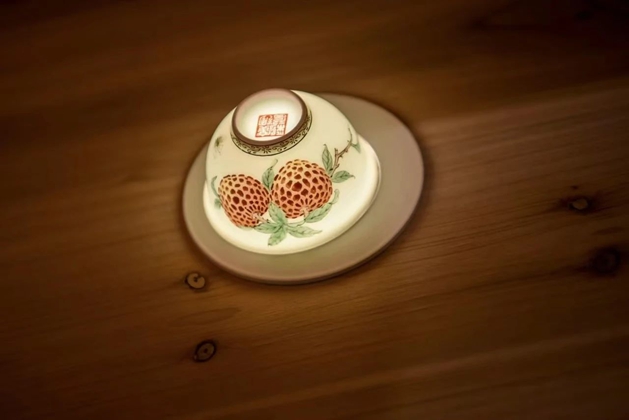 広彩の「荔枝杯」は、中仏首脳が茶会を開いた際に使用された茶器で、高級白磁に荔枝の模様が描かれており、「嶺南の荔枝の赤」をイメージしている。「妃子笑」のロマンスを国際舞台に運んだ。