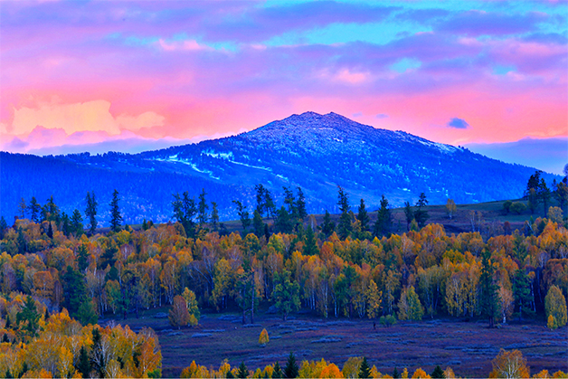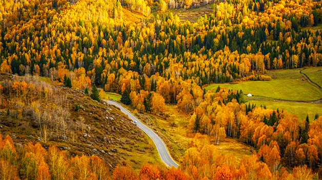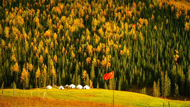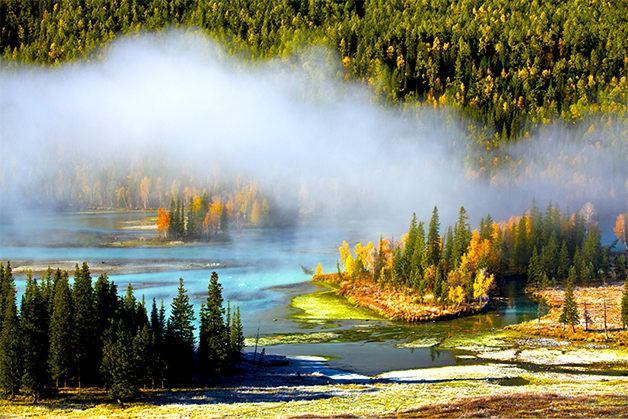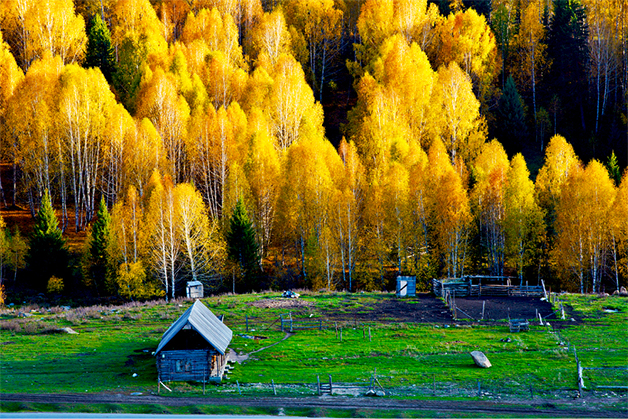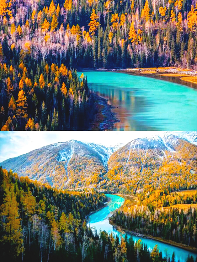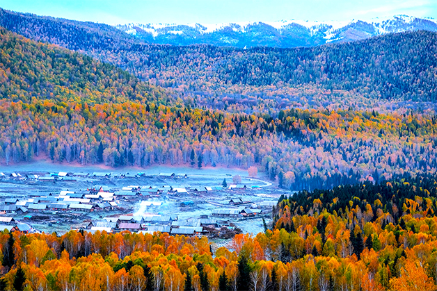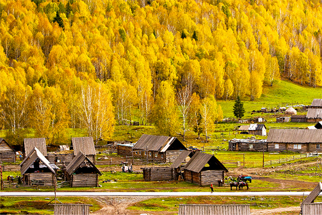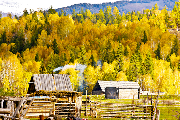 新疆自治区ブルチン県、禾木の秋は、美しすぎて誰も拒絶する事が出来ないと言われるほどである。禾木は中国最大のトゥバ人の居住地で、ここでは秋の絶景以外にもトゥバ文化を楽しむ事が出来る。