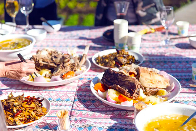 お昼は、白樺林でピクニック、緑の芝生、白樺林と空が美しい色のコントラストを作りだしています。新疆グルメの手抓羊肉や、ワインや烏蘇ビールをを一緒に楽しんでみるのはどうだろう。