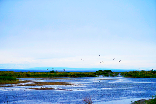 中国で2番目に大きなグルバンテュンギュト砂漠の奥地を抜けると、まるで海のようなウルングル湖の広大な水面が広がる。ウルングル湖はモンゴル語で「雲が立ちのぼる場所」を意味し、不思議な事にここにもヤルダン地形がありウルングル湖とつながっている。