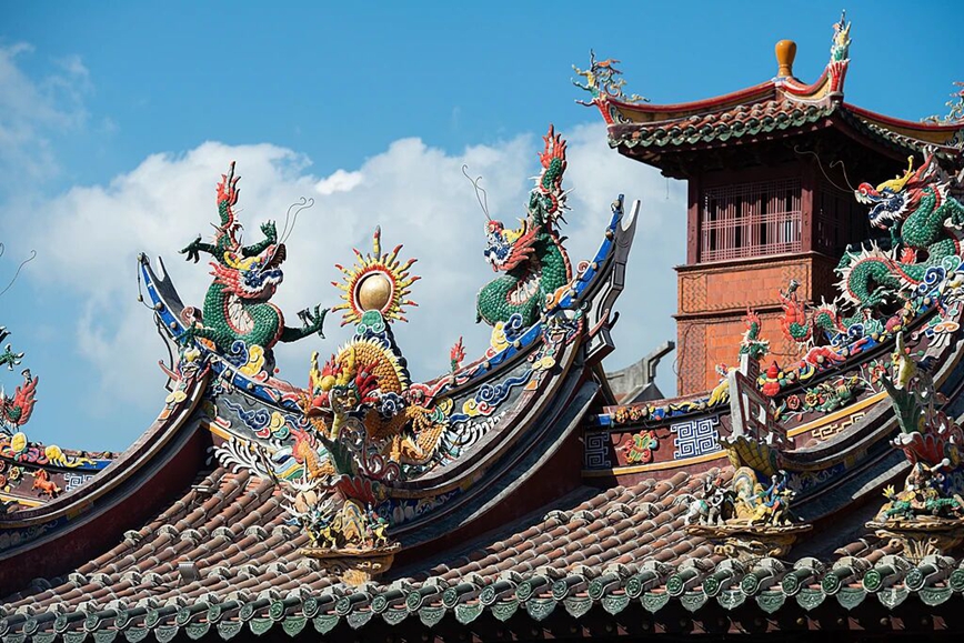 商いで富を築いた閩南の人々は、家を建てることに強いこだわりを持っていた。門の額には家系の繁栄を願う「衍派」「伝芳」などの文字が刻まれ、彫刻や彩色の梁や柱にはその功績が映し出されている。赤煉瓦は「出煉入石」と呼ばれる技法で積まれ、堅牢でありながら独特のリズムを奏でる。たとえ南洋へ渡って建てられた“番仔楼”であっても、西洋風のローマ柱の下には必ず赤煉瓦の基壇があり——それこそが、決して持ち去ることのできない故郷の根なのだ。