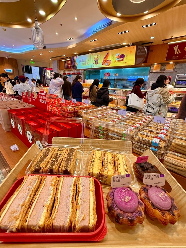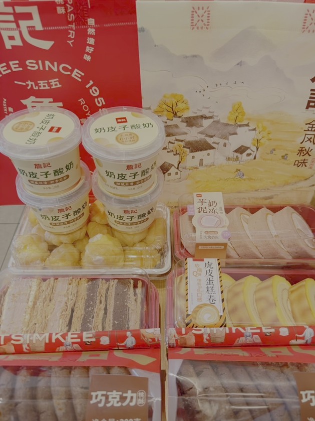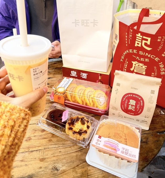 ホットのミツクティを飲みながら、隣の詹記へ。看板メニューの宮廷風桃酥、クルミ入り桃酥、祁門紅茶入り桃酥、チョコレート桃酥、海塩チーズ桃酥、そして各種菓子が揃う。数箱を詰めてトランクに詰め込めば、最高の土産になる。