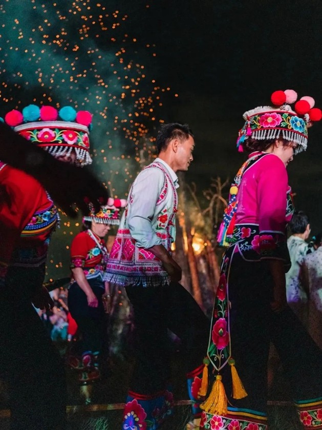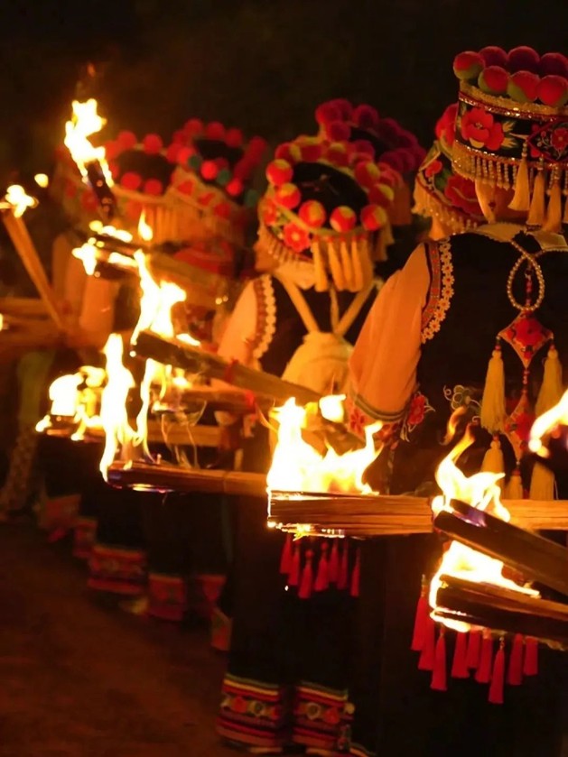 レスリング大会ではイ族の勇ましさが表現され、伝統の歌や舞踊からは素朴で熱い情熱が伝わってくる。そして、なかでも訪れる人々が最も楽しみにしているのが「顔に花を描く儀式(抹花顔)」である。香ばしい草木の灰を顔に塗り合い、黒くなればなるほど幸運が訪れるという願いが込められている。たいまつに火が灯され、笑顔いっぱいの“花顔”が浮かび上がるとき、千年の文化が生き生きと息づき、心を揺さぶる光景が広がる。