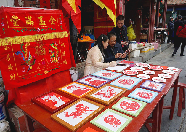 景色を楽しんだり、芝居を聴いたり、得意技を見たり、食べ物を味わったりして、廟会のない一年は完全ではない。揚州の人々は絶妙な芸術作品を作るのが得意である。美しい紙切り、真に迫るアートフラワー、繊細な化粧粉は、腕によりをかけてていねいに作り上げる職人技の産物だ。また、揚州の多くの無形文化遺産項目の中で最も素晴らしい項目であり、指先の廟会に欠かせない。