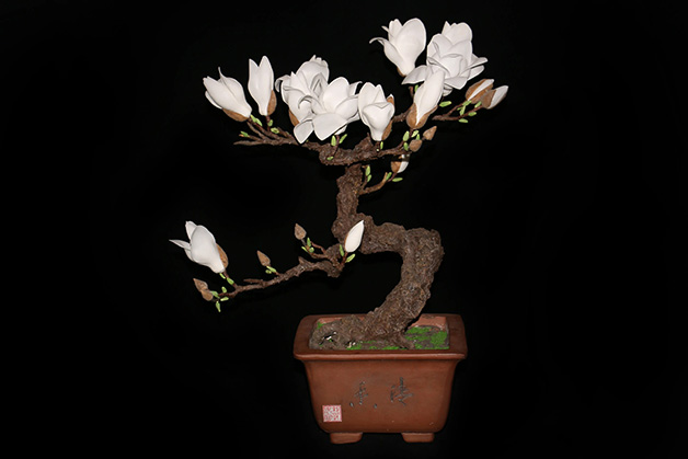 装飾品だけでなく、通草花も絶妙な盆栽にすることができる。冬は梅の花だけが満開になるが、通草花のように見えることで、冬は雪に覆われた春の色になり、新年は活気のある雰囲気になる。永遠の花は、しぼみ落ちることがなく、新年の喜びのように消えることはない。