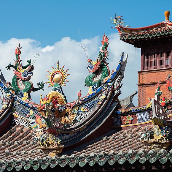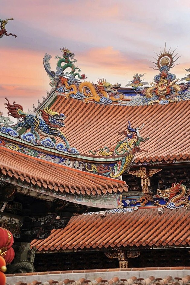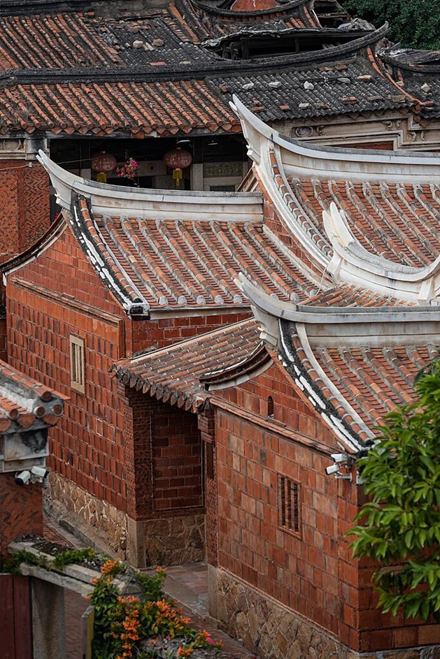 商いで富を築いた閩南の人々は、家を建てることに強いこだわりを持っていた。門の額には家系の繁栄を願う「衍派」「伝芳」などの文字が刻まれ、彫刻や彩色の梁や柱にはその功績が映し出されている。赤煉瓦は「出煉入石」と呼ばれる技法で積まれ、堅牢でありながら独特のリズムを奏でる。たとえ南洋へ渡って建てられた“番仔楼”であっても、西洋風のローマ柱の下には必ず赤煉瓦の基壇があり——それこそが、決して持ち去ることのできない故郷の根なのだ。