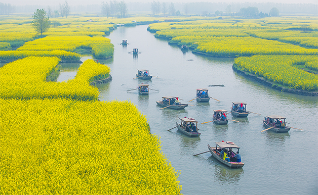 船で花の海を楽しむこと、青い波に舟を浮かべることは、興化の千の積みの畑にあるカリフラワーを鑑賞するための最良の方法である。景勝地には4つのドックがあり、電気クルーズ船と小さな木製ボートがある。同行人が少ない場合、小木船を体験できる。船にある娘が船を運転して島々の間を往復し、咲き乱れる花が水に咲くのを見て、菜の花の香りを嗅ぎ、花の海で揺れ、とても心地がよいである。耳に残っているのは、さらさらと流れる水の音、飛ぶ蜂と蝶の音、そして人間の笑い声で、突然世外の桃源を夢見ているような錯覚を与えた。