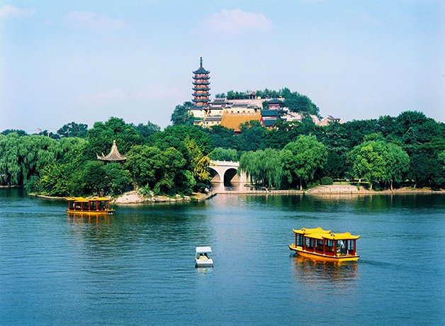 「寒雨江に連なって、夜呉に入る。平明客を送れば、楚山孤なり。洛陽の親友、如し相問わば。一片の氷心、玉壺に在り。」詩人の王昌齢は芙蓉楼で友人を見送る際に、感銘を受けて、友人に自分の初心を洛陽に持ち帰るように言った。この詩は日本の教科書にも選ばれたと言われている。かつてある日本人がここを訪れたが、芙蓉楼はとっくに消えた。この芙蓉楼はもともと西北楼と呼ばれ、頂上に登ると長江を見下し、江北を見渡すことができる。確かに歴史の長い川に消えていたが、近年は金山湖の畔に再建された。夕日の光りが金山湖に反射するたび、水面が輝き、芙蓉楼の姿を映し出す。なんて素晴らしい景色だろう。