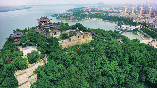 北固楼は北固山に位置しており、ここは「天下第一江山」と呼ばれている。三国時代、劉備と孫権は北固山で大計を商談し合った。山に登ると、斑だらけの東呉時代の城壁が見える。千年の歳月が過ぎたが、新しくできた苔がここの生命力を語っているようだ。「千古興亡多少事、悠々、不尽長江滾滾流。」